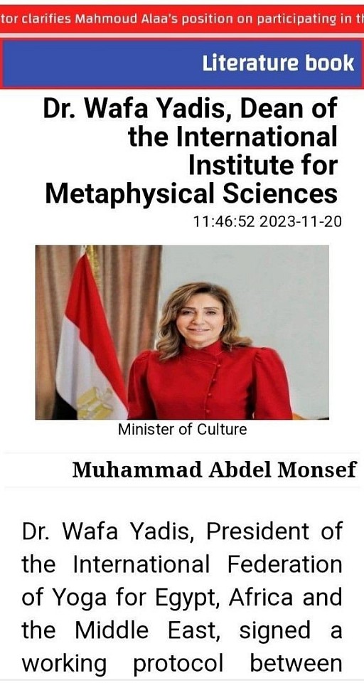توقيع بروتوكول تعاون مع الإتحاد الفيدرالي الدولى لليوجا لمصر وأفريقيا والشرق الأوسط